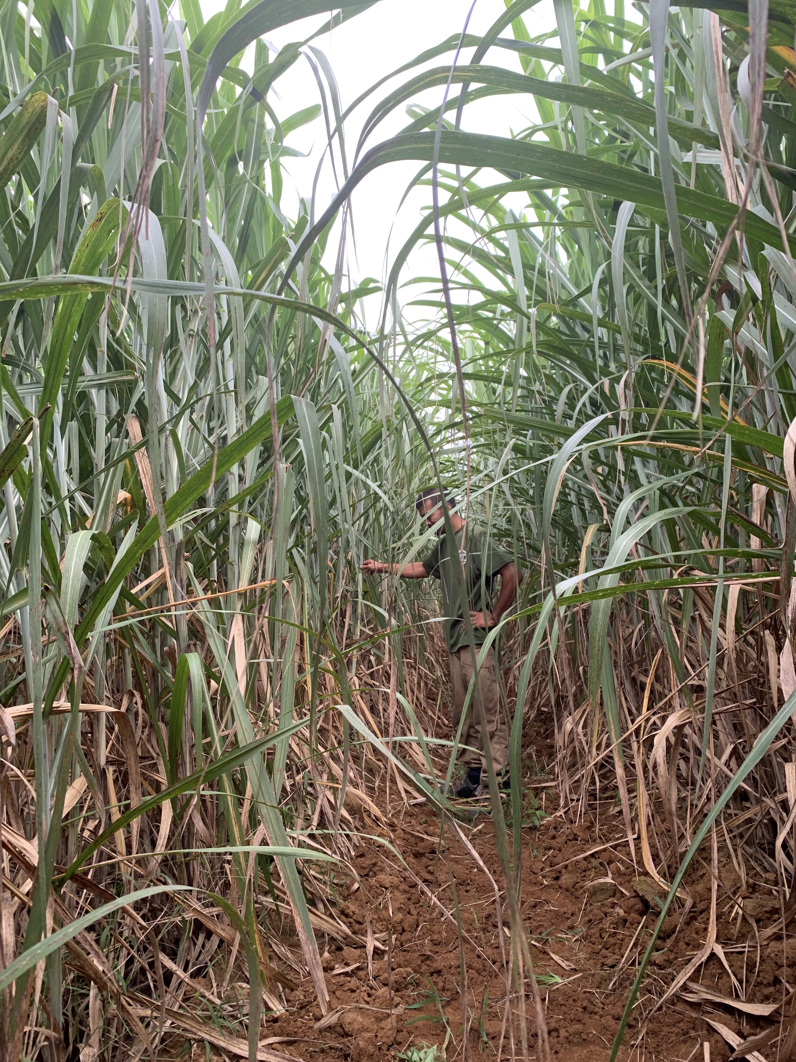 今回、台風10号が種子島をイジメたので台風明けには、若干倒伏したキビに